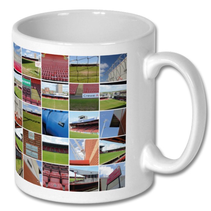 Mug featuring photographs of Crewe Alexandra's Mornflake Stadium (Gresty Road)